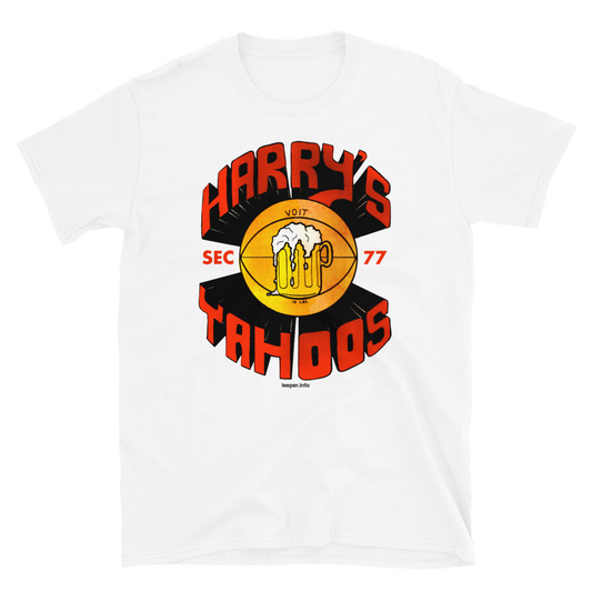 T-shirts would turn Harry’s dismissal into our badge of honor. The party faithful liked the design in my geometry notebook. The story behind the design so amused the local screen printer that he brought me behind the counter, cut me a killer deal, and ran off a sample. Two weeks later, the party faithful were sporting their t-shirts - in class, on the street, and notoriously, at basketball games.